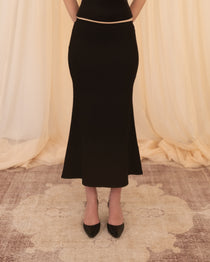 Composed, polished, and never as innocent as she seems. A crisp white blouse, black skirt, and a hint of lace beneath it all.