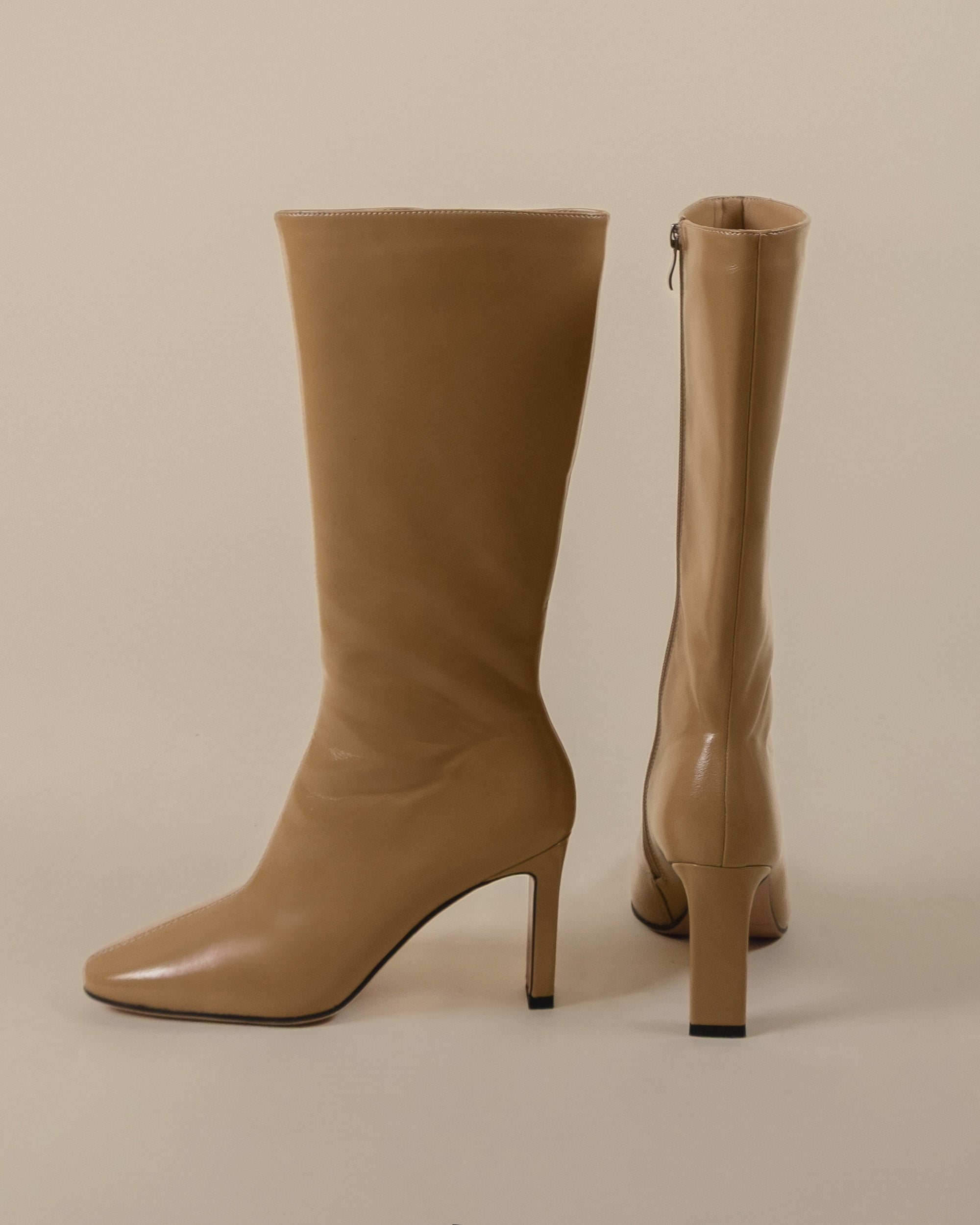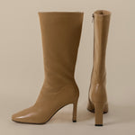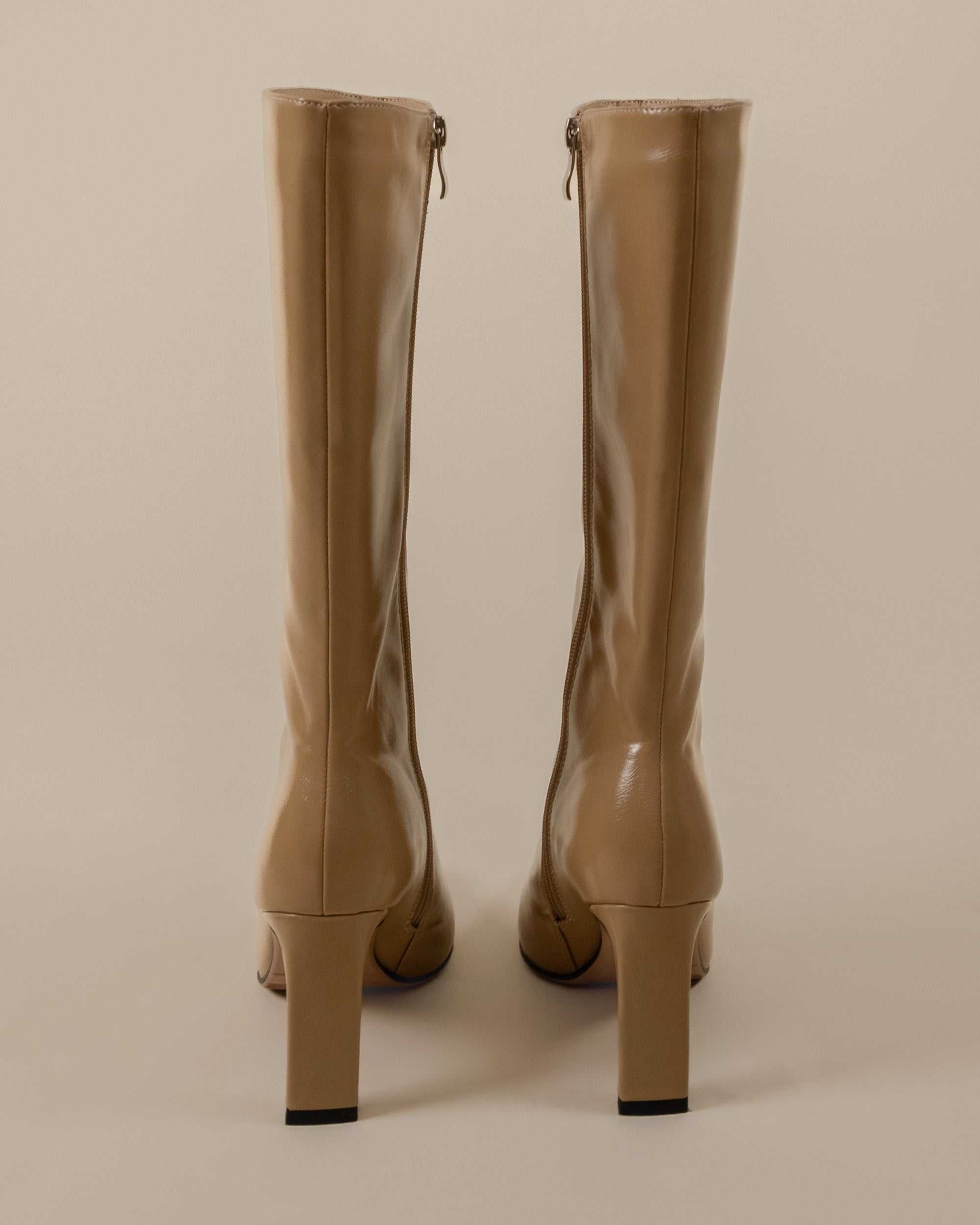 Step into timeless elegance with our 90s-inspired calf-length boots. Designed to sit just below the knee, these boots embody the sleek, sophisticated style that ‘it girls’ of the 90s made iconic. Crafted with a soft pointed toe and straight, sleek heel, they deliver a modern yet vintage aesthetic. Made with faux leather, these boots offer an eco-friendly alternative with all the luxury. Perfect for elevating any outfit, these boots will become a classic staple in your wardrobe.
