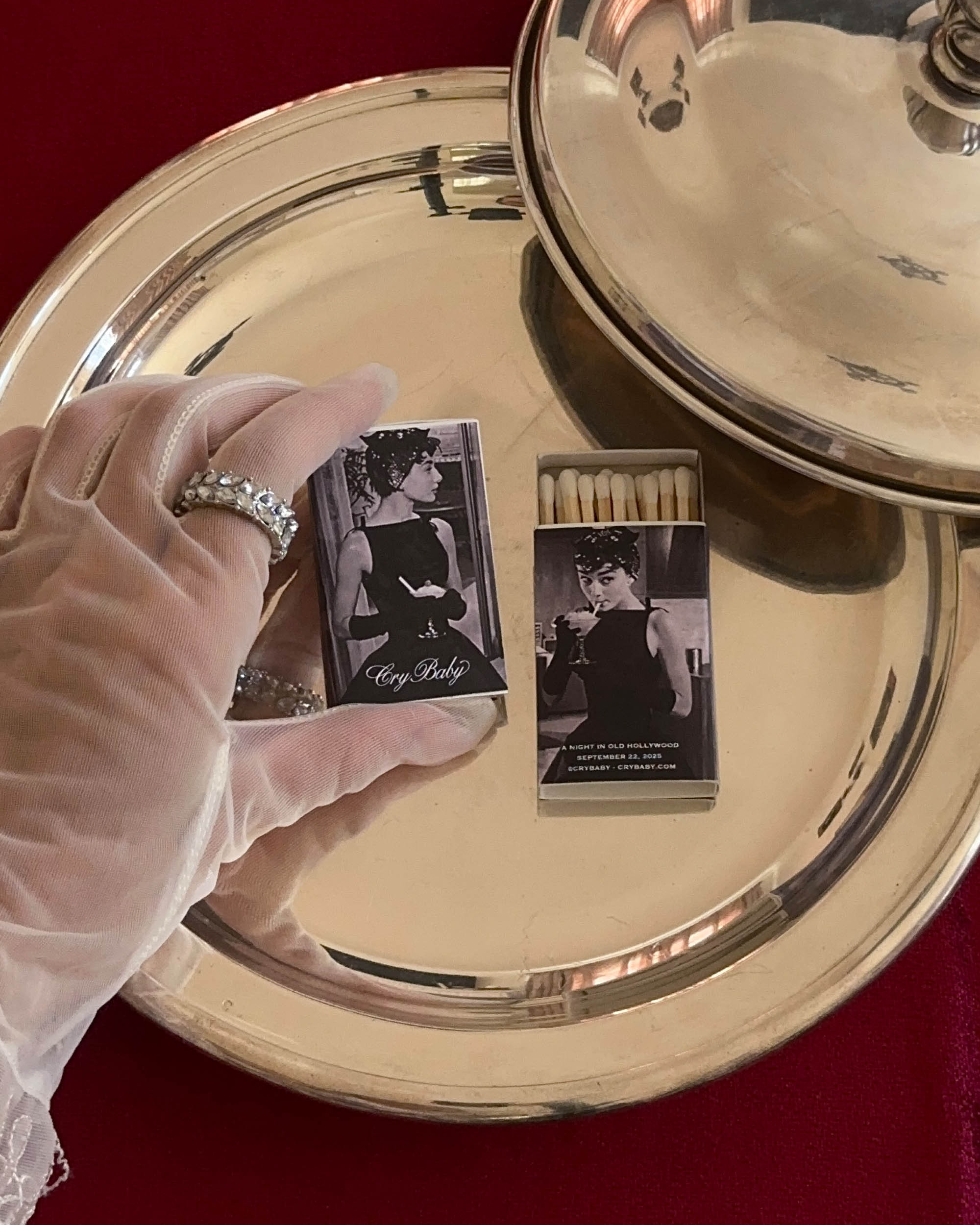These custom keepsake matches were designed exclusively for our A Night in Old Hollywood screening of Sabrina. Inspired by Audrey Hepburn’s timeless elegance, each box carries the romance of vintage cinema and the glamour of Hollywood’s golden age.